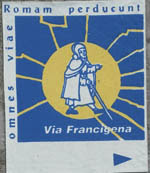 Questo percorso parte dal Monginevro ed arriva naturalmente a Roma. Qui il simbolo che segnala il percorso è il pellegrinetto giallo, generalmente con due frecce: una bianca per indicare la via verso Roma e l’altra gialla per indicare la via verso Santiago.