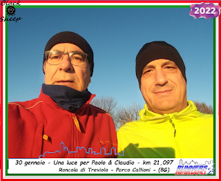 Domenica 30 gennaio, ecco che si accende (beh, in senso figurato) anche una “luce verde” sul circuito della Roncola. Come al solito, il mio modo di festeggiare un avvenimento lieto, di ricordare una ricorrenza, in questo caso di essere vicino a Paola e Claudio, i genitori do Giulio, è quello di organizzare e correre una gara. In questo caso una mezza: “Una luce per Paola e Giorgio”. Gare quasi sempre corse in solitaria, ma da qualche tempo ho la gradita compagnia di Stefano, per cui è quasi una … vera gara. Ripensandoci bene, non c'è competizione: Stefano si prende cura del “vecchietto”; ecco, lui per me è la mia “luce verde”.